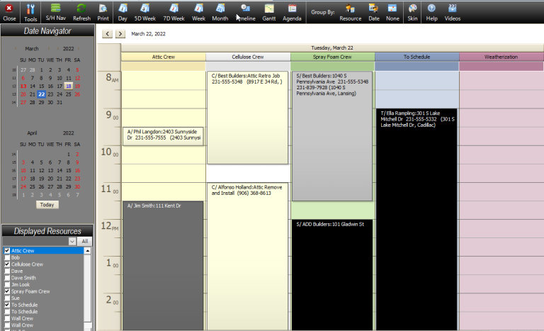 Create a separate calendar for each crew, crew type, insulation type, or employee. Completely customizable to fit the way you manage your schedule.