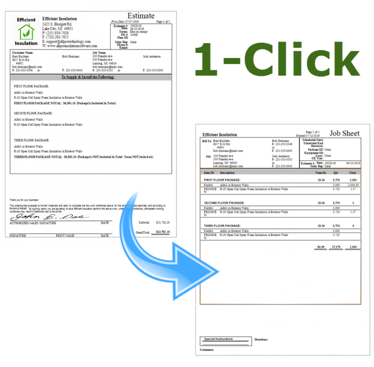 Stop entering the same information over and over. No need to have one spreadsheet for the estimate and then another spreadsheet for the job sheet. Allpro Insulator allows you to easily produce a job sheet directly from the estimate with zero double entry.